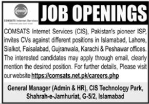 COMSATS Internet Services (CIS) – Job Openings