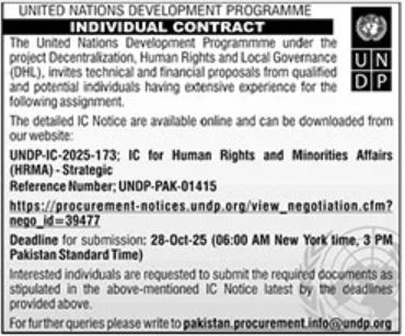 Human Rights and Minorities Affairs (HRMA) – Strategic | UNDP-IC-2025-173 / UNDP-PAK-01415 | Decentralization, Human Rights and Local Governance (DHL) | 28-Oct-2025, 03:00 PM PKT | Pakist |